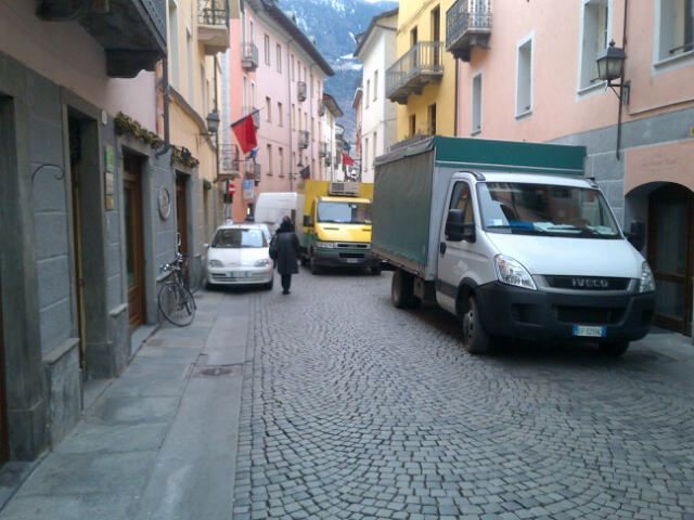 Già! Ma se non c’è il passaggio. La Giunta municipale di Aosta oltre a pensare alle grandi opere e a tagliare servizi, dovrebbe quanto meno preoccuparsi dell’incolumità dei pedoni e dei ciclisti che ad ogni pedalata rischiamo di venire travolti da auto e camion; così come i pedoni. E’ inutile avere speso migliaia di euro per la buona idea del City Porto, concretizzata da Stefano Borrello, se poi i Vigili si guardano bene dal far rispettare il codice stradale in città: la foto in basso è un esempio di cosa accadde tutti i giorni nel centro storico.