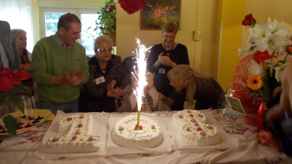 Invece, oggi, la ‘nonnina’ della Valle d’Aosta ha compiuto 108 anni, festeggiati nel Centro Polivalente per Anziani, in via Saint Martin de Corléans, affidato alla Cooperativa Leone Rosso. In un salone addobbato con ghirlande, mazzi di fiori, cuori e palloncini multicolori con la forme dell’età di Elvira un pubblico delle grandi occasioni ha omaggiato il simbolo della struttura, cantandole il tradizione ‘’Tanti auguri Elvira, tanti auguri a te’’. E poi, via alle danze con l'orchestra di Claudio e Franco.