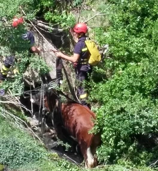 Sono stati alcuni escursionisti a dare l'allarme, vedendo l'animale in difficoltà. Difficoltosa ma coronata dal successo l'operazione di salvataggio: la mucca è stata imbragata e issata in terraferma con un argano.