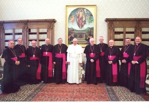 Nella foto il vescovo di Aosta, Franco Lovignana, con Papa Francesco