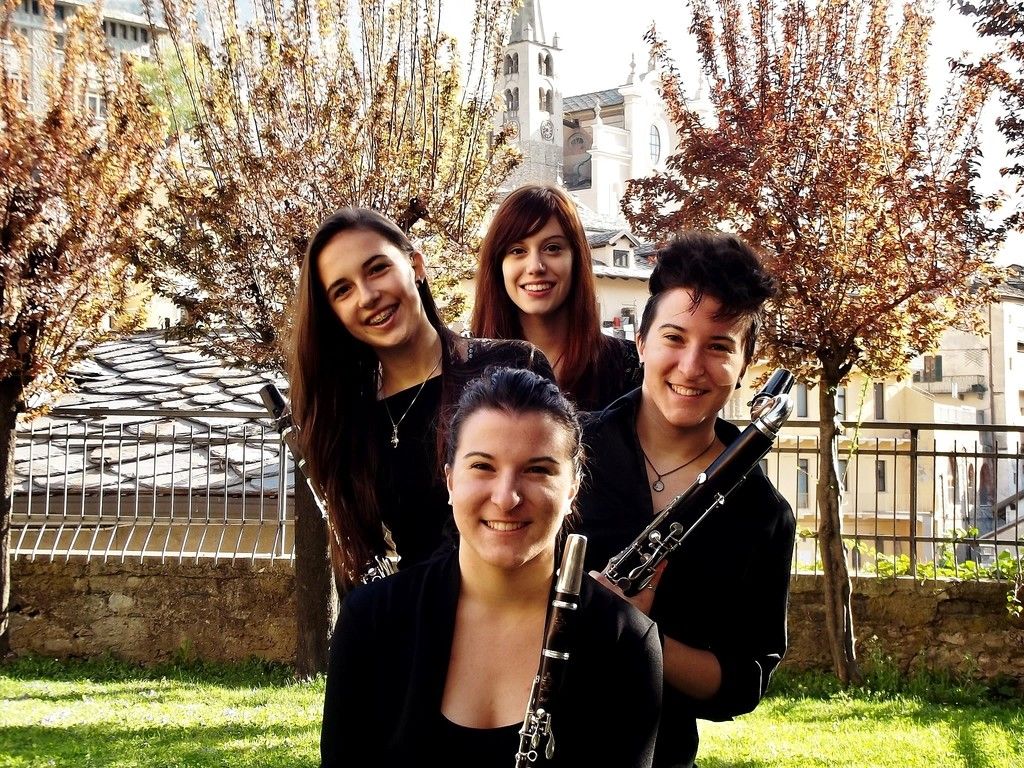 LeQuarteGiuste, quattro clarinettiste frequentanti il Conservatoire de la Vallée d’Aoste, hanno in comune due grandi passioni: il clarinetto e la musica. Il nome del gruppo, oltre a fare riferimento alla “quarta giusta” – intervallo fondamentale nella teoria musicale e consonanza perfetta in acustica – riflette la comunanza di intenti e l’amicizia tra le componenti del quartetto.