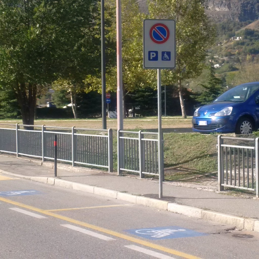 Di più i parcheggi sono posizionati nel punto più lontano da tutte le strutture sportive. I parcheggi per disabili sono lontani dal pala ghiaccio, dal campo di rugby, dal palaindor, dal campo di atletica, dalla piscina, dal maneggio.