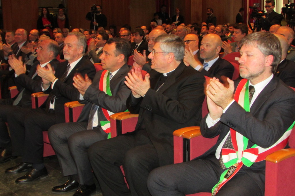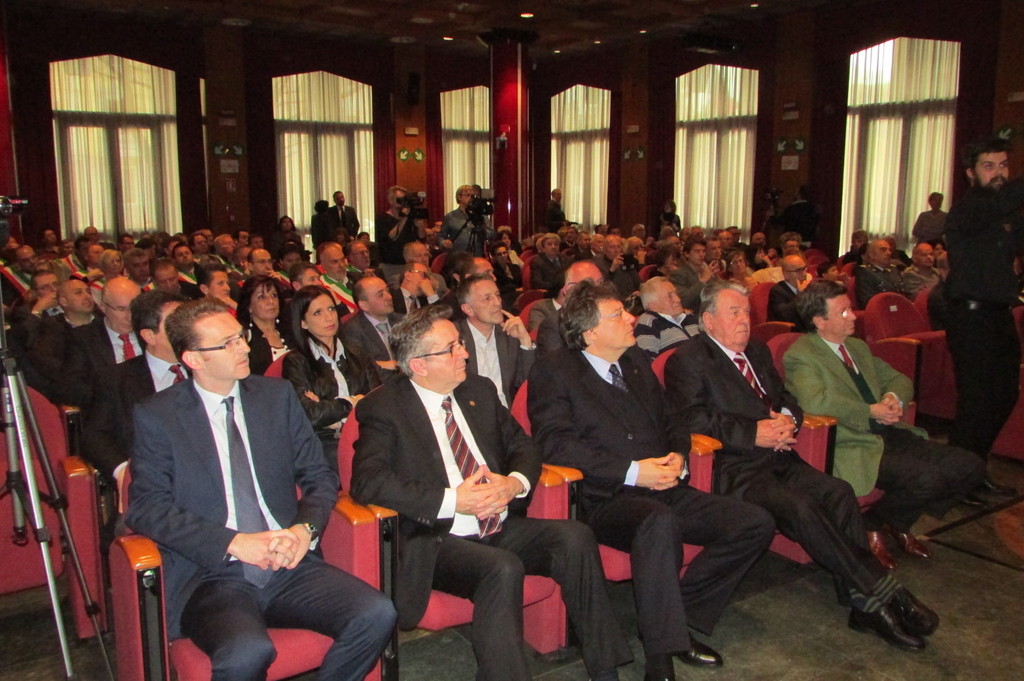 Vi è un richiamo alla responsabilità da parte dei cittadini, a cui noi, referenti di politica e Istituzioni, possiamo rispondere soltanto con l’impegno costante e la serietà delle azioni di governo, in un clima di serietà e condivisione. Mi auguro che questa festa sia l’occasione per portare la riflessione attorno all’esigenza di un programma comune per poter innanzi tutto procedere con un’azione politica efficace e coerente, come ci viene chiesto dalla comunità. Come è stato evidenziato con il filmato di apertura, ricorre, quest’anno, anche il 71esimo anniversario della ricostituzione dei Comuni, soppressi dal regime fascista. I Comuni sono custodi di un patrimonio straordinario e da sempre ricoprono un ruolo determinante per il nostro sistema di autonomia.