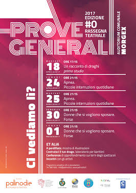 Un racconto di draghi, in scena martedì 18 aprile 2017 alle ore 17:15, produzione di teatro ragazzi; Apnea. Piccole interruzioni quotidiane, lunedì 24 aprile e martedì 25 aprile 2017 alle ore 21:15 e Donne che si vogliono sposare. Forse, domenica 30 aprile e lunedì 1 maggio 2017, alle 21:15.