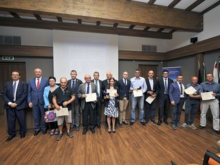 E’ proseguita la cerimonia di consegna dei riconoscimenti per le "Eccellenze al lavoro 2017”, quinta edizione del premio istituito da Confindustria Valle d’Aosta che ha voluto offrire ad ogni azienda associata l’opportunità di premiare un dipendente che si sia particolarmente distinto per il valore del suo contributo professionale, anche per coloro che sono già in pensione. La consegna dei riconoscimenti, un “Tatà” personalizzato e una pergamena ricordo, consegnati da Paolo Giachino, affiancato dal Presidente della Regione autonoma Valle d’Aosta, Pierluigi Marquis, e l’Assessore alle attività produttive, Fabrizio Roscio, per sottolineare la valenza sociale del riconoscimento del merito.