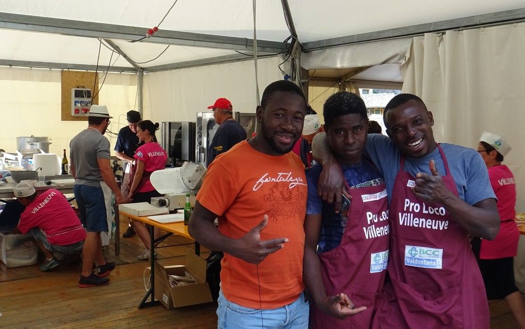 La convenzione prevede attività di lavoro volontario per verniciatura e tinteggiatura, supporto nel mantenimento del territorio per le attività di pulizia delle strade e innaffiatura dei fiori nonchè collaborazione nella realizzazione di feste e sagre. E proprio oggi, mercoledì 16 agosto, i ragazzi africani hanno dato il meglio di sé collaborando con il comitato organizzatore della tradizionale Fiha di Barmé che si svolge tra le vie del borgo. Occupati in attività di pulizia e riordino delle cucine e del padiglione enograstronico, i migranti ospiti a Villeneuve hanno avuto modo di mettersi in luce per spirito d'iniziativa e voglia di fare: doti apprezzate dagli organizzatori e dai visitatori della Fiha di Barmé.