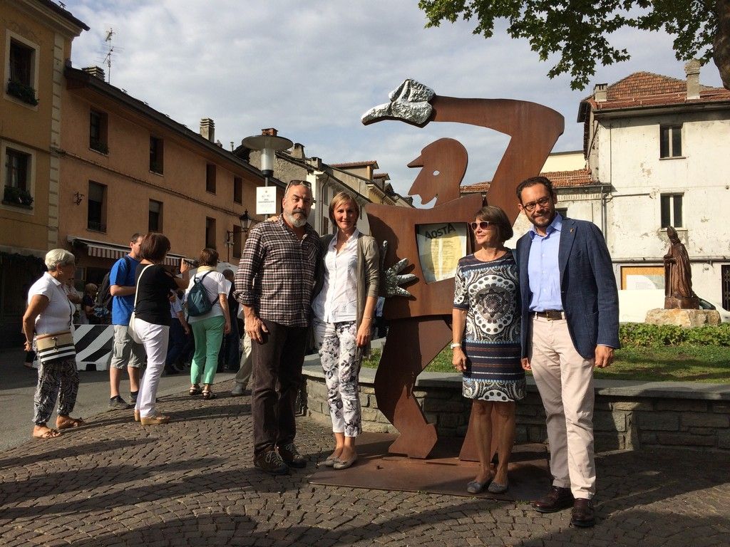 “Ho voluto creare un’opera che fosse ben visibile e che incuriosisse i passanti. E credo che quest’uomo dalle grandi mani abbia questi due requisiti, oltre a conservare nel cuore la cosa più importante, ovvero la bacheca con il programma delle visite guidate della città di Aosta”. Così Bobo Pernettaz, l’artista che insieme a Piero Nigra ha realizzato il totem divenuto il simbolo delle visite guidate organizzate dall’Adava in collaborazione con le guide turistiche, ha spiegato la sua opera d’arte.