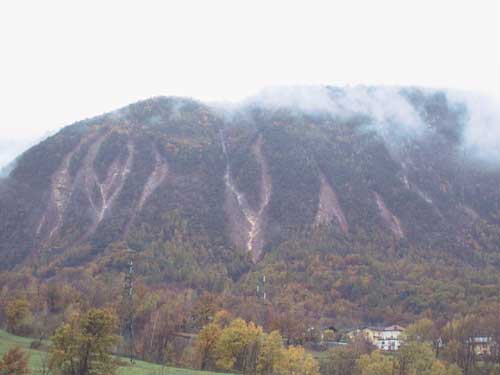 L'intensità e la durata delle piogge hanno poi imbibito fortemente il suolo, innescando generali fenomeni di scivolamento dei versanti con abnorme trasporto solido verso gli impluvi andando ad incrementare ulteriormente la portata dei corsi d'acqua.