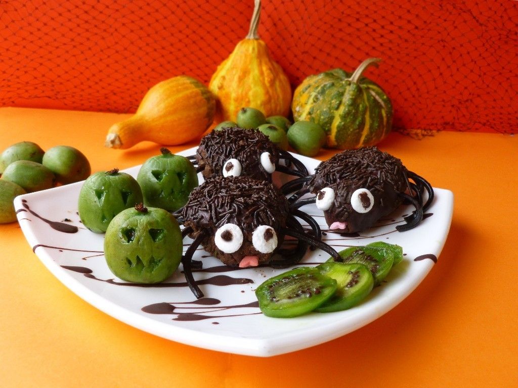 Nel frattempo, preparate le zampette: srotolate le rondelle di liquirizia , dividete a metà il filo di liquirizia e tagliatene 128 pezzetti di circa 4 cm. Trascorso il tempo, riprendete l’impasto, formate una pallina, schiacciate un pochino da un lato in modo da formare la testa, poi con uno stecchino fate 4 buchi da ogni lato del ragnetto e infilate in ogni buco i pezzi di liquirizia. Fondete il rimanente cioccolato e, con un pennello da dolci, spennellati la schiena dei ragni e applicate le codette di cioccolato. Mettete 2 meringhette a formare gli occhi e un goccio di cioccolato al centro per la pupilla; inserite la farfallina di zucchero per creare la linguetta e poi lasciate raffreddare.