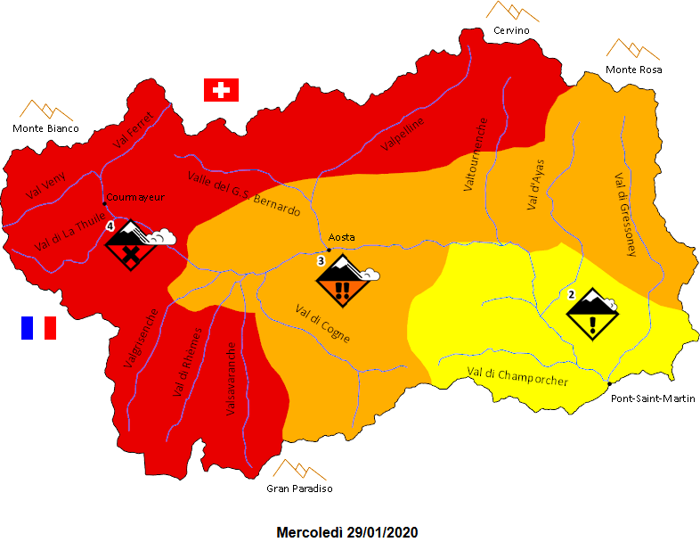 Sale quindi l'allerta per valanghe che, in virtù delle determinazioni che assumeranno le Commissioni Locali valanghe, non si esclude possa portare localmente alla chiusura preventiva di strade.