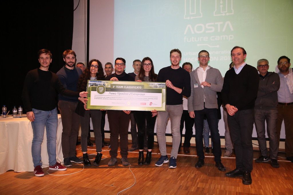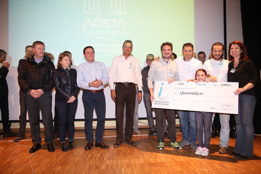 Il premio è andato al Team Polit(AO) per il progetto relativo alla rivalorizzazione dello stadio Puchoz. Componenti: Crepaldi Matteo, Cusnirius Victor, Domini Alberto, Duc Alberto, Fejr Maria Gagliano Francesca. Il premio speciale Cva, rivolto al progetto che meglio ha saputo sviluppare e sostenere iniziative quali nuove tecnologie di monitoraggio, generazione distribuita, digitalizzazione del rapporto con il cliente, risparmio energetico, mobilità elettrica, piattaforme per aggregazione, smart grid, smartmetering, stoccaggi non è stato assegnato ma rilanciato da CVA per la durata di un mese nel corso del quale dovranno pervenire all’Associazione Aosta Future Camp nuove proposte progettuali in linea con l’indirizzo strategico individuato dall’azienda. La migliore oltre che vincere il premio in palio, sarà inserita nel piano di CVA – Valle d’Aosta 2023.