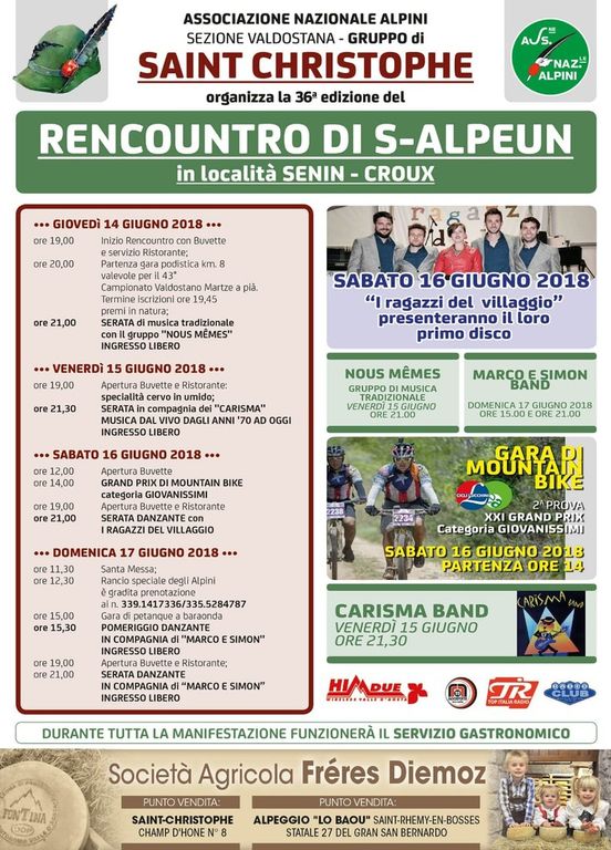 Compie 36 anni il Rencountro di s- alpeun in programma da giovediì14 a Senin – Croux di Saint-Christophe, organizzato dalla locale sezione Ana.