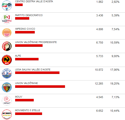 Infatti la neo probabile maggioranza ha raccolto 27.942 voti per una percentuale totale di 43,85% dei voti così suddivisi: