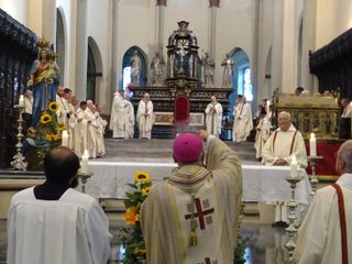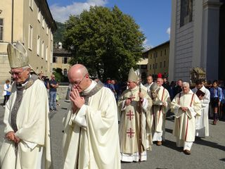 Gremita la Cattedrale di Aosta questa mattina, venerdì 7 settembre, per la celebrazione di San Grato, patrono del capoluogo valdostano. La giornata religiosa è iniziata alle 9,30 quando i fedeli della diocesi aostana si sono raccolti in preghiera nella Cattedrale per la Messa, concelebrata da monsignor Lovignana con tutto il presbiterio e monsignor Giuseppe Anfossi, vescovo emerito di Aosta, e che è stata seguita dalla tradizionale processione con le reliquie di San Grato per le vie del centro città. Tanti, forse più dei recenti anni passati, gli aostani che hanno partecipato alla cerimonia e hanno accompagnato la cassa reliquario lungo le vie del centro storico. Ricordando le virtù del Santo Patrono del capoluogo valdostano, Monsignor Anfossi ha invitato a riflettere sulla "necessità di far tesoro della sua fede in questi tempi così particolari e difficili" e ha ricordato l'importanza di condividere ciò che si ha con il prossimo senza pretendere nulla in cambio, così come fece sempre San Grato.