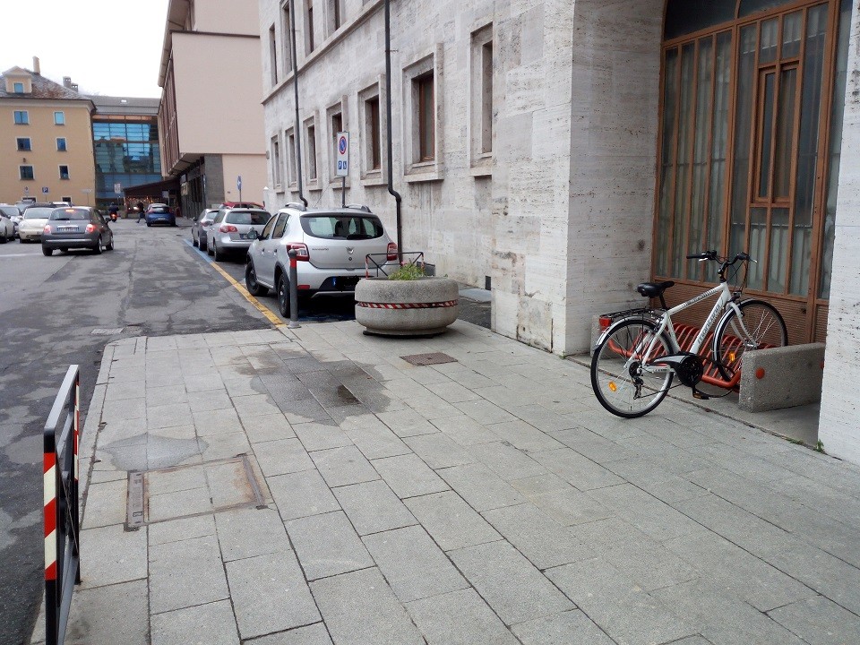 Infatti il genio della stupidità ha posizionato una fioriera proprio nel bel mezzo del passaggio che in piazza della Repubblica consente di accedere all’ingresso dell’Assessorato regionale alla attività produttive. I pedoni, e peggio ancora chi è in carrozzella, per poter accedere all'assessorato, deve scendere da marciapiede, fare lo slalom, rischiare di finire sotto qualche auto.