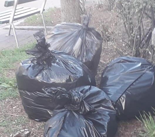 Sacchi neri riempiti di cartongesso, evidentemente tolto da qualche alloggio e abbandonati nottetempo in un'area verde.