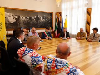La sala del Municipio di Courmayeur ha ospitato una breve cerimonia di accoglienza e di saluto della delegazione del Belarus alla presenza del Sindaco di Courmayeur e di alcuni componenti della Giunta e del Consiglio comunale.