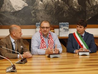 Nel corso dell’incontro istituzionale il presidente delle Guide Alpine di Courmayeur, Alex Campedelli, ha consegnato a sei alpinisti bielorussi, che nei prossimi giorni saranno impegnati nella salita al Monte Bianco, la pergamena che è consuetudine donare a chi scala il Monte Bianco.