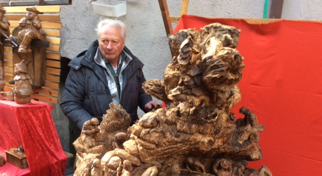 La produzione artigianale di Diemoz è caratterizzata dalla grande libertà espressiva e dalla tematica tradizionale riguardante il mondo rurale valdostano. Stretto legame dellautore con la propria terra, che si materializza nelle sculture realizzate in legno di noce, di grande forza espressiva, la stessa forzache sarà presente in Davide Merlino, straordinario percussionista, capace di rendere musicale qualsiasi oggetto, abile soundpainter e esperto didatta della musica, ci sarà la possibilità di giocare con il suono e con il ritmo.