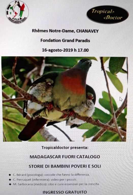E per far conoscere la propria missione ha organizzato in collaborazione con la Fondazione Grand Paradis una serata ad ingresso libero sul tema: Madagascar fuori catalogo Storie di bambini poveri e soli.