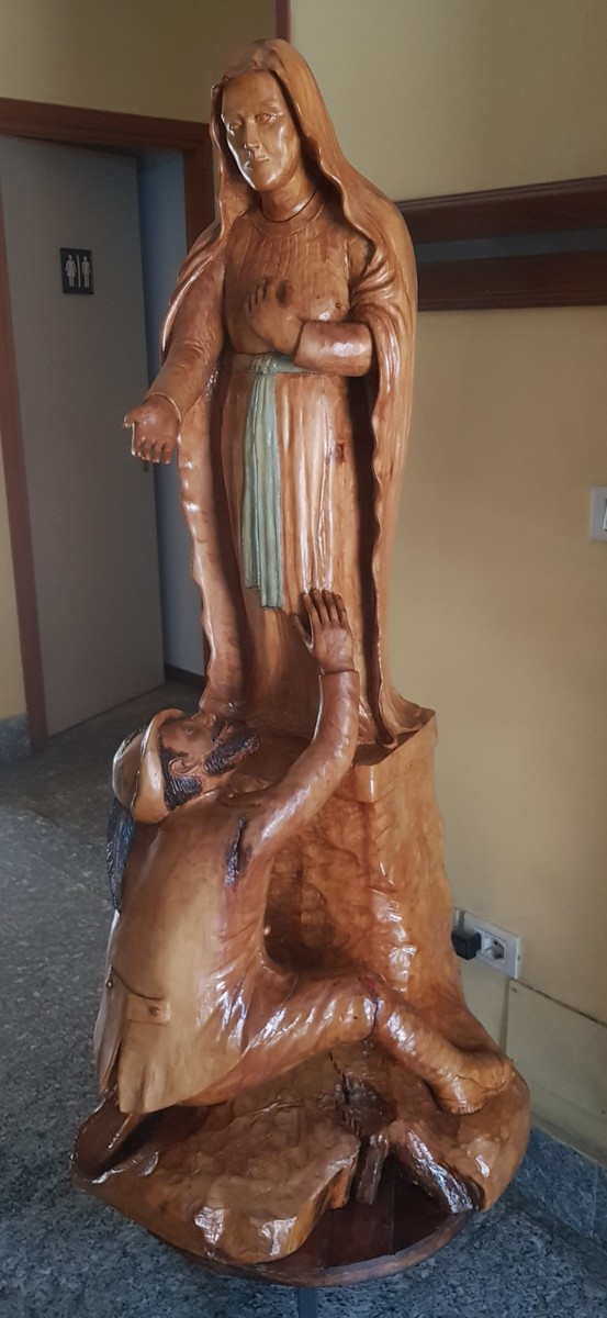La scultura che ha eseguito e che la famiglia ha donato al gruppo alpini di Gressan, è la rappresentazione di un alpino inginocchiato che chiede la grazia alla Vergine Maria. L’opera è realizzata in cirmolo che Ernesto aveva colto nei boschi di Pila, da qui il pensiero della famiglia di farla rimanere all’interno del comune in modo da ricordare l’attaccamento al proprio territorio che Ernesto aveva sempre espresso.