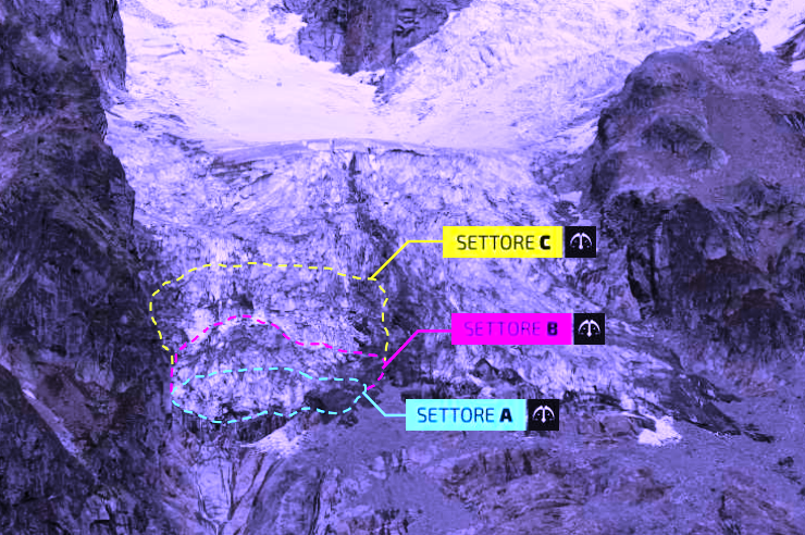 Il settore C del Ghiacciaio di Planpincieux registra uno spostamento medio giornaliero pari a 15 cm al giorno.