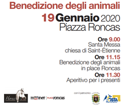 Il 17 gennaio si festeggia Sant'Antonio Abate, con la tradizionale benedizione degli animali 2019. Da qualche anno, in piazza Roncas ad Aosta si rinnova una tradizionale quanto curiosa funzione: quella della benedizione degli animali che si svolgerà, però, domenica 19 gennaio. Il rito è celebrato oggi in forma assai ridotta rispetto al passato e i partecipanti si sono ristretti ai soli animali domestici, come cani, gatti e canarini. Nei secoli scorsi, la cerimonia si svolgeva invece con grande sfarzo: gli animali da benedire erano numerosissimi e andavano dai buoi agli asini, dagli animali da cortile fino ai cavalli delle carrozze dei nobili.