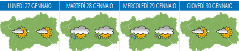 Il Centro Funzionale Meteo della Regione Autonoma Valle d'Aosta informa che una circolazione depressionaria centrata sull'Europa occidentale tende a transitare lentamente verso levante facendo affluire correnti più umide che alterneranno schiarite a addensamenti, talvolta importanti.