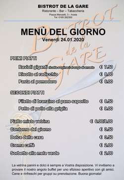 La rassegna stampa di oggi è offerta dal Bistrot de la Gare di Aosta. Il miglior modo per iniziare la giornata: leggere i giornali e fare colazione al Bistrot de la Gare. Professionalità e competenza nella caffetteria, eccellenza nella ristorazione, cortesia nei servizi. Bistrot de la Gare in piazza Manzetti 3, aperto fino alle ore 21