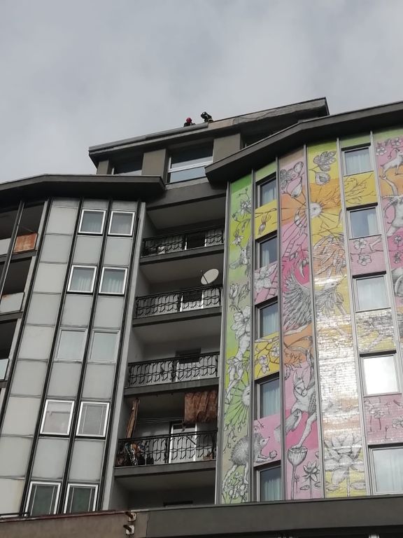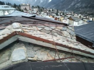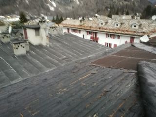 Mezzi intervenuti aps autopompaserbatoio e autofurgone carro fiamma. La squadra di Courmayeur è intervenuta in via Monte Bianco per mettere in sicurezza un tetto danneggiato dal forte vento.