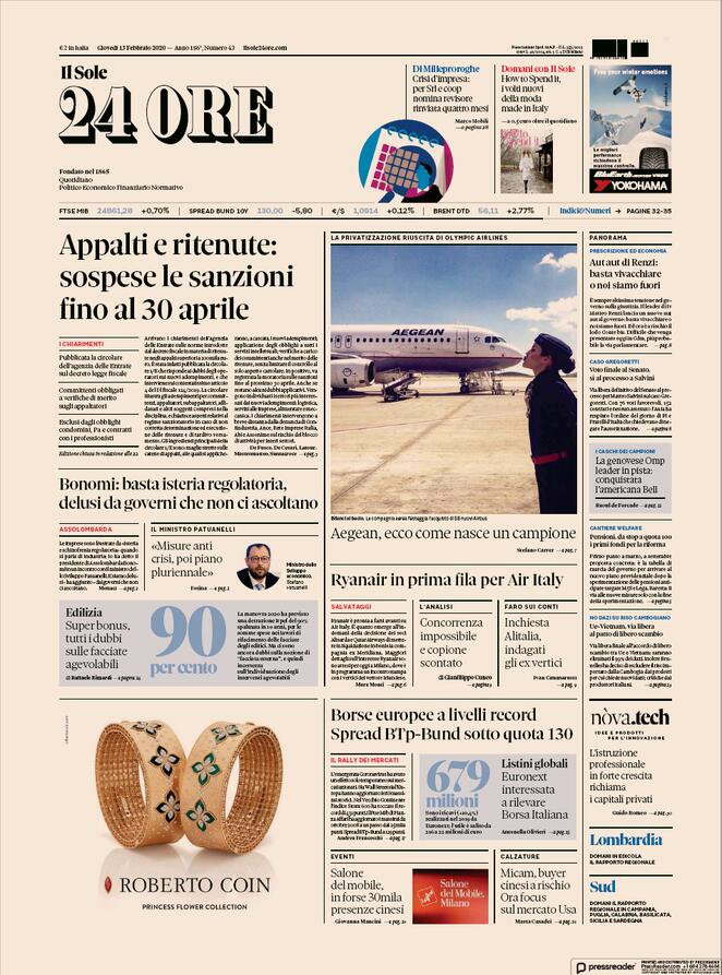 LE PRIME PAGINE DEI QUOTIDIANI DI OGGI 13 FEBBRAIO AL BISTROT DE LA GARE