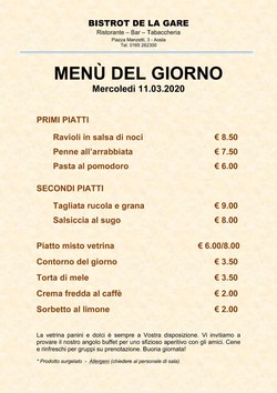 La rassegna stampa di oggi è offerta dal Bistrot de la Gare di Aosta. Il miglior modo per iniziare la giornata: leggere i giornali e fare colazione al Bistrot de la Gare. Professionalità e competenza nella caffetteria, eccellenza nella ristorazione, cortesia nei servizi. Bistrot de la Gare in piazza Manzetti 3, aperto fino alle ore 21