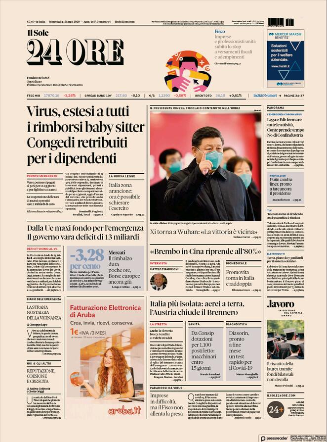 LE PRIME PAGINE DEI QUOTIDIANI DI OGGI 11 MARZO AL BISTROT DE LA GARE