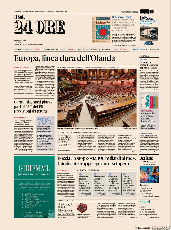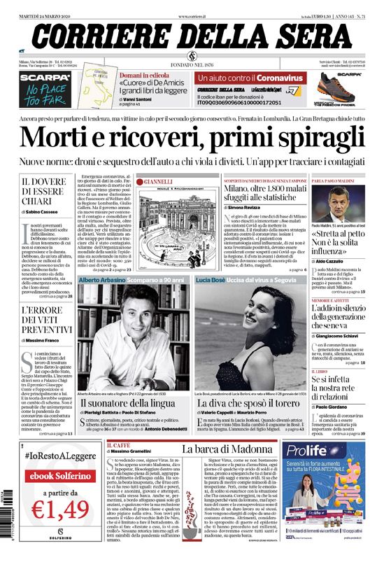 LE PRIME PAGINE DEI QUOTIDIANI DI OGGI 24 MARZO AL BISTROT DE LA GARE