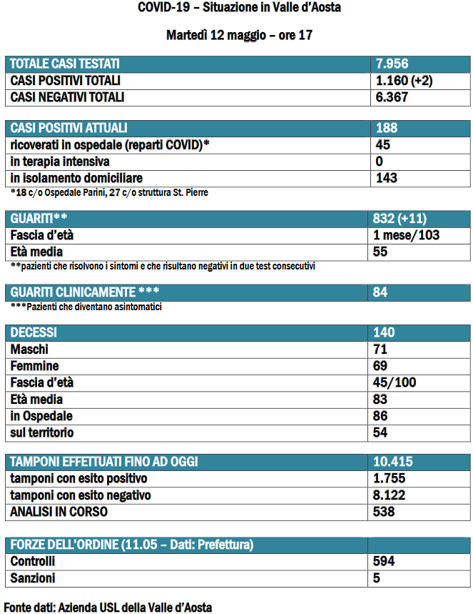 L'Unità regionale di crisi, presieduta dal Presidente della Giunta, Renzo Testolin, ha organizzato una nuova conferenza stampa per illustrare l'ordinanza in merito alla ripresa di molte attività in Valle d'Aosta, nonchè l'andamento delle misure messe in atto per contenere la diffusione del virus COVID-19.