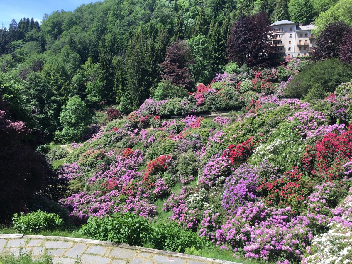 La tappa da non perdere è la Conca dei Rododendri, in questo periodo un’incredibile palette di colori che rigenera corpo e spirito. Una straordinaria opera di valorizzazione paesaggistica realizzata, a partire dagli anni ’30, dall’imprenditore tessile Ermenegildo Zegna che nell’ambito di un più vasto progetto ambientale, volle nei dintorni dell’omonimo Lanificio servizi, come una scuola, un cinema, un ospedale, una piscina, alberghi, ristoranti e molto altro. Un “mecenate ambientale” ante litteram, capace di creare una bellezza democratica, accessibile a chiunque. Costruì una strada lunga 26 km – ancora oggi Panoramica Zegna - per collegare le città con le “terre alte”, piantumò 500mila conifere, oltre a svariate centinaia di rododendri e ortensie. Oggi, percorrendo per qualche km la Panoramica Zegna, dal Lanificio Zegna (ancora attivo) di Trivero Valdilana si svela in tutta la sua bellezza la Conca dei Rododendri, un’ampia area dalle tinte fiabesche ideata e finanziata dall’industriale biellese, implementata successivamente dal famoso architetto paesaggista Pietro Porcinai (che collaborò con Zegna per circa vent’anni) e seguita più di recente dall’architetto Paolo Pejrone.