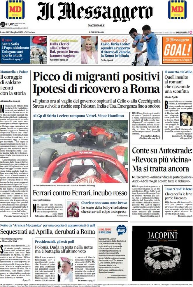 LE PRIME PAGINE DEI QUOTIDIANI DI OGGI 13 LUGLIO AL BISTROT DE LA GARE