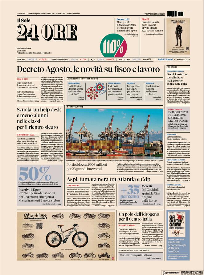 LE PRIME PAGINE DEI QUOTIDIANI DI OGGI 7 AGOSTO AL BISTROT DE LA GARE