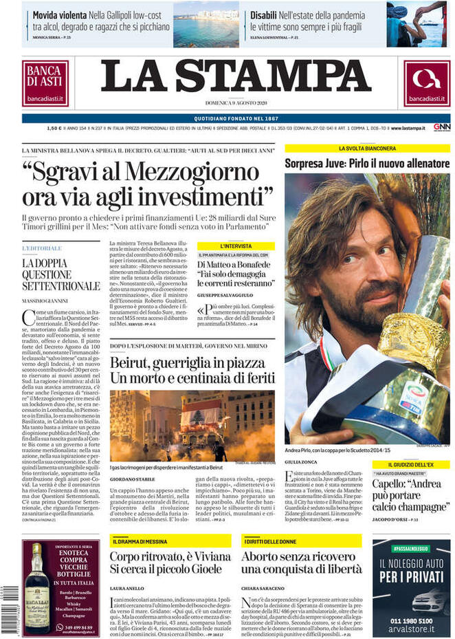LE PRIME PAGINE DEI QUOTIDIANI DI OGGI 9 AGOSTO AL BISTROT DE LA GARE