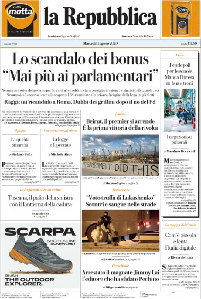 LE PRIME PAGINE DEI QUOTIDIANI DI OGGI 11 AGOSTO AL BISTROT DE LA GARE