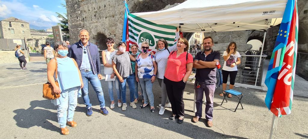 Ad Aosta, un punto di informazione e ritrovo è stato predisposto in Piazza Porte Pretoriane a cui hanno preso parte tante lavoratrici e lavoratori. Da parte delle organizzazioni sindacali, come si legge in una nota, "si vuole fare giungere un ringraziamento per i tanti che hanno aderito alla giornata di sciopero, in un momento così particolare e difficile. Nonostante i salari così bassi hanno rinunciato ad una giornata di lavoro con conseguente perdita della retribuzione".