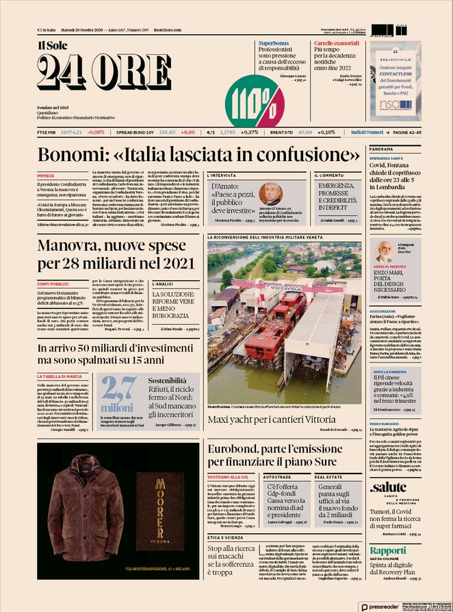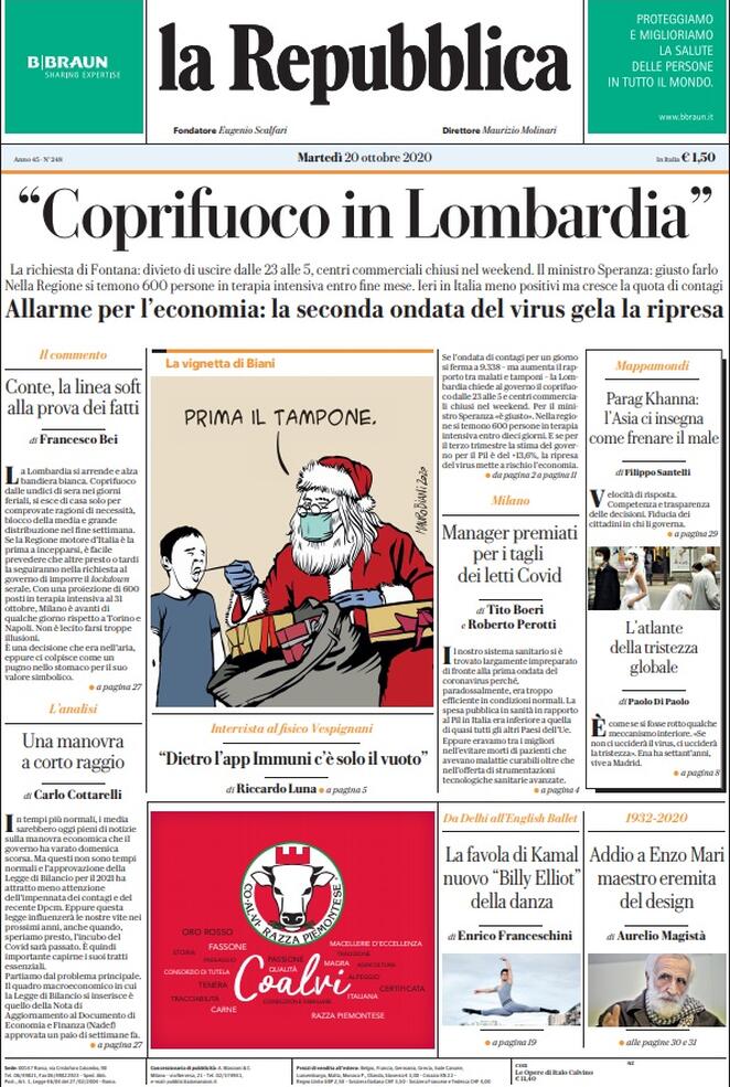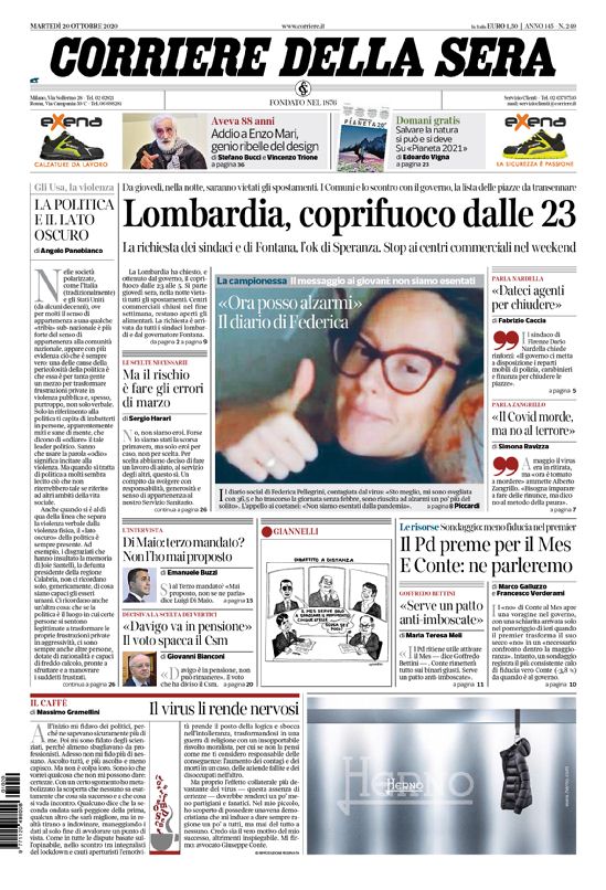 LE PRIME PAGINE DEI QUOTIDIANI DI OGGI 20 OTTOBRE AL BISTROT DE LA GARE