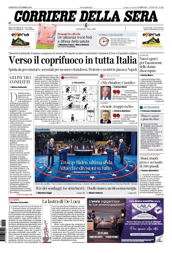 LE PRIME PAGINE DEI QUOTIDIANI DI OGGI 24 OTTOBRE AL BISTROT DE LA GARE