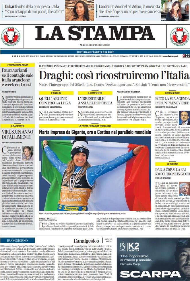 LE PRIME PAGINE DEI QUOTIDIANI DI OGGI 17 FEBBRAIO