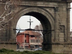 Dopo aver avuto modo di scandalizzarsi per la cartolina che lo accoglie, il turista può visitare il ricco patrimonio artistico culturale della città, ma prima di lasciare la Capitale (non si sa di che cosa….), uscendo dalla porta est potrà cimentarsi nello scatto di una istantanea che, come in un fotomontaggio nature, ovvero autentico, mette assieme l’archeologia, la storia la cultura dell’Arco d’Augusto con l’onta urbanistica di una costruzione sulla quale nessuno, e non si sa per quale ragione, vuol mettere mano nonostante sia di pregiudizio per una moderna organizzazione urbanistica di Aosta.