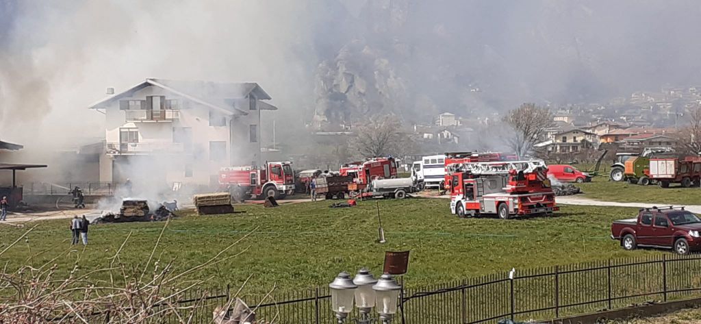 Vigili del fuoco professionisti e volontari nonchè i proprietari del frabbricato e loro vicini sono stati impegnati ore nello spegnimento delle fiamme che poco dopo le 11 di oggi giovedì 25 marzo hanno avvolto la stalla dell'allevatore Gianni Peretto, tra Donnas e Pont-Saint-Martin.