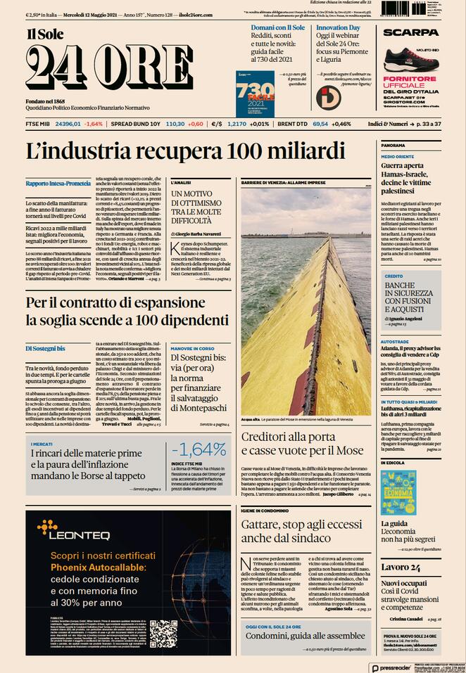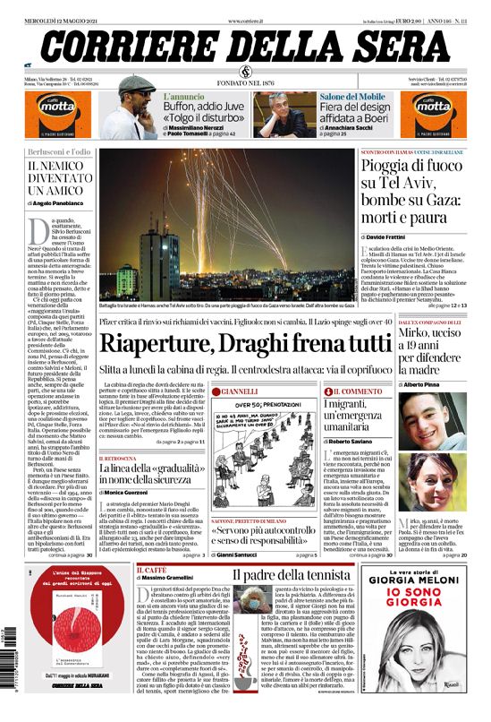LE PRIME PAGINE DEI QUOTIDIANI DI OGGI 12 MAGGIO