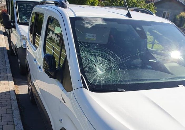Vandali in azione la notte scorsa lungo strada regionale in prossimità delľUfficio postale di Gressan. Alle auto e a un furgone da lavoro regolarmente parcheggiati sono stati infranti i parabrezza.