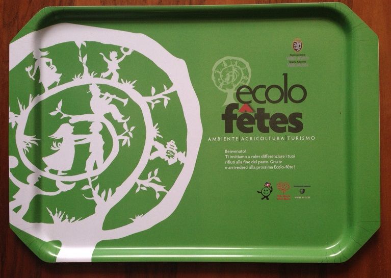Ecosagra o Ecofesta è un modo ecologico di organizzare e gestire questi eventi, in genere sponsorizzati da Enti pubblici quali Comuni, Pro-Loco, Associazioni o altri soggetti. Al fine di organizzare una "Ecolo-Fête" patrocinata dall'Amministrazione regionale, i soggetti organizzatori di manifestazioni in Valle d'Aosta, quali sagre, fiere ed altri eventi simili, per quanto attiene la corretta gestione dei rifiuti, possono usufruire di materiale di supporto disponibile presso il Dipartimento Ambiente che mise a disposizione posate ecocompatibili.