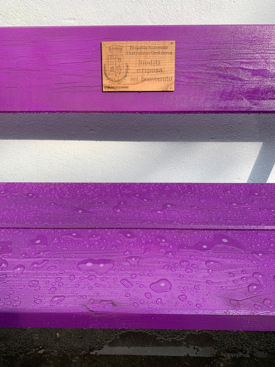 Per questo motivo, il 7 Dicembre 2019, l’Assessore alla Gentilezza Erina Patti, del Comune di Quincinetto TO, ha immaginato e poi inaugurato la prima panchina viola della gentilezza.